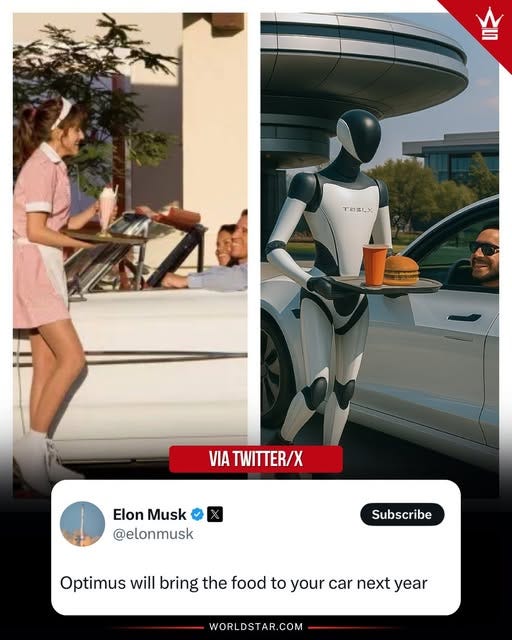 Fortunately for us, Elon possesses a type of autism which is immune to knowing when to shut up. His little post with the robot was cool to approximately thirty five people, of which thirty are living in Mumbai. However, while that post itself was revealing, it was functionally just the quiet part out loud. The vast majority of people are already getting served by clankers, just not in fast food…